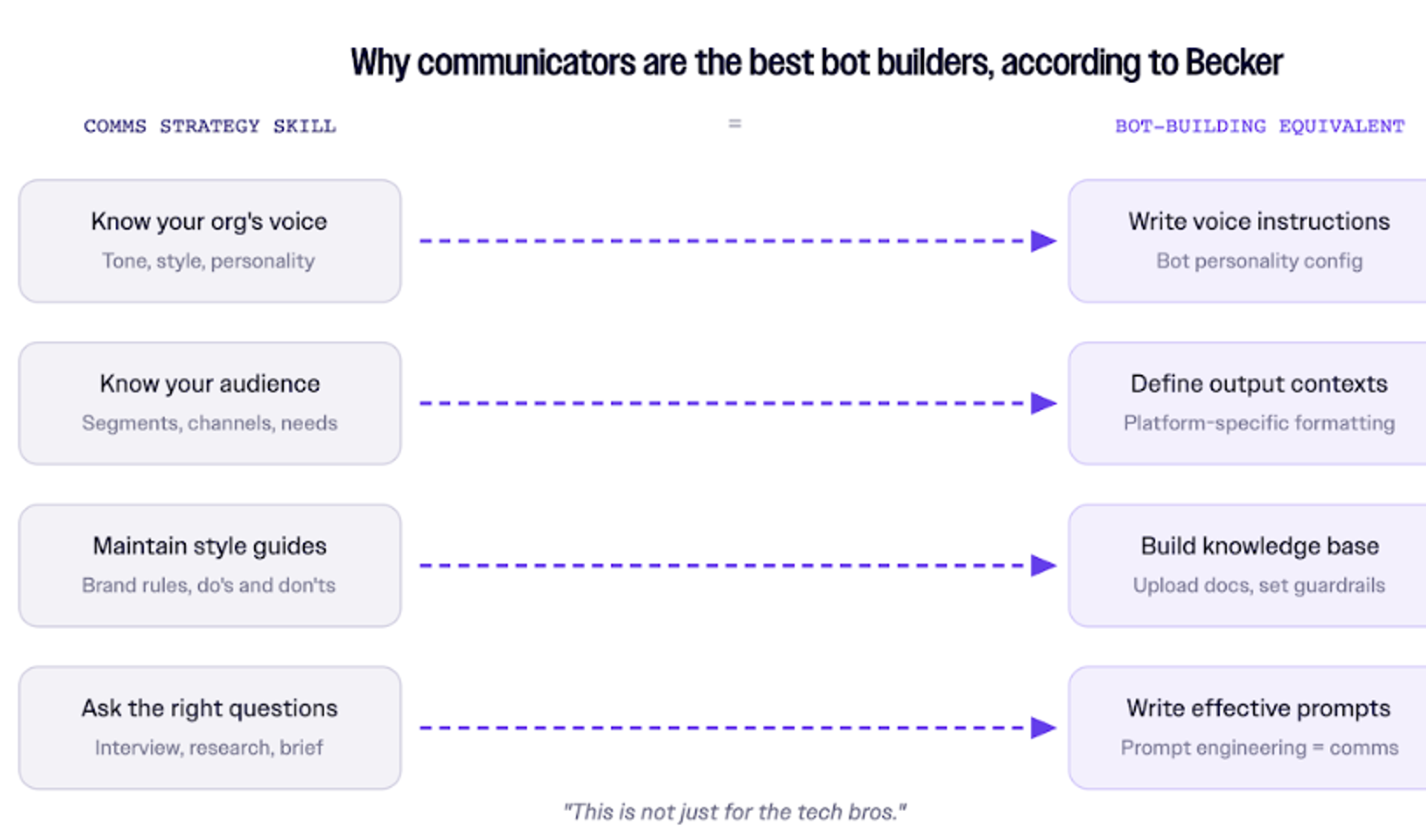 As for the future of human communicators alongside AI? Becker isn’t worried. The skills required to build effective custom bots—strategic thinking, audience understanding, and storytelling expertise—are exactly what professional communicators already possess.