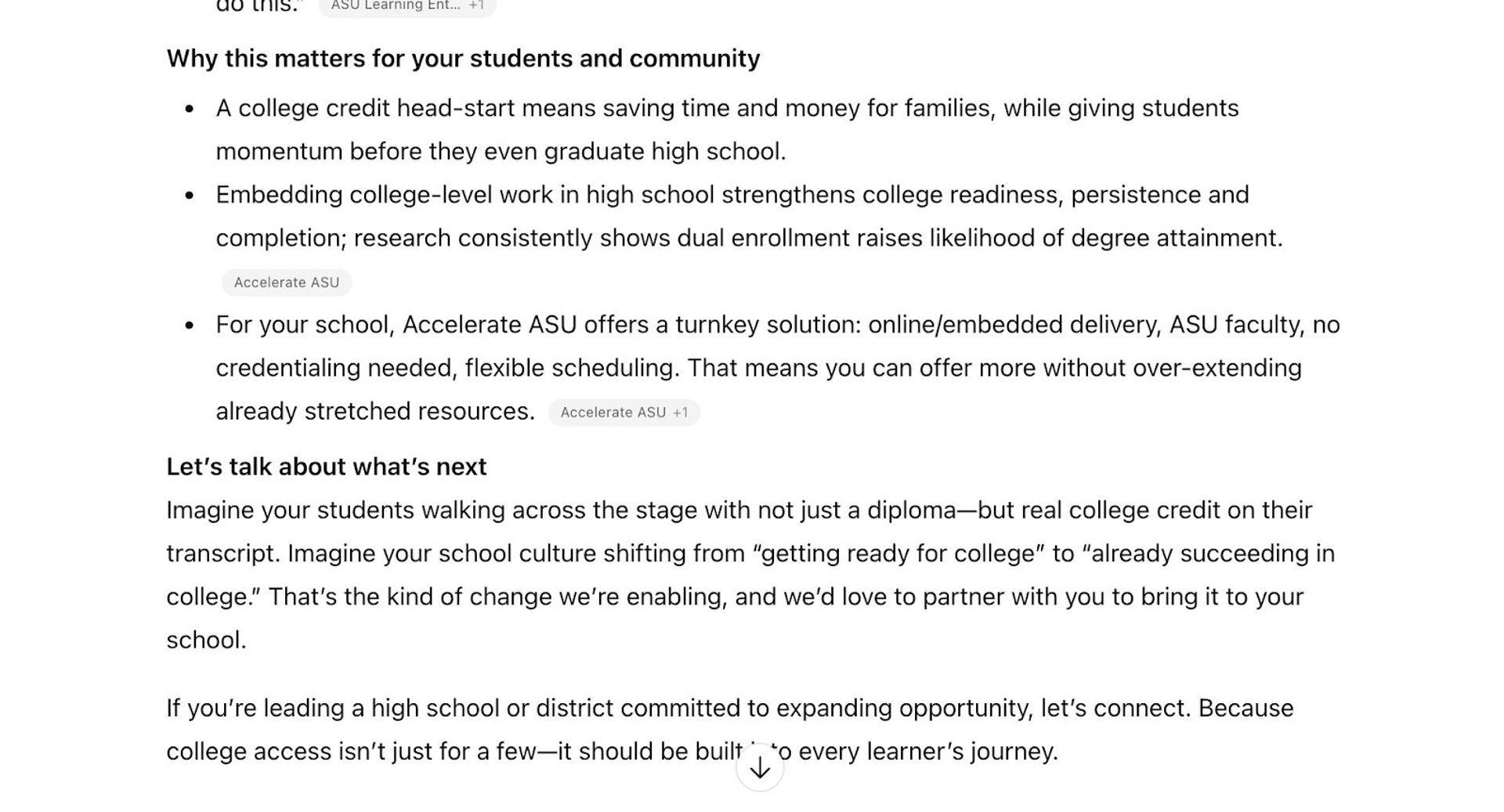 - A document like this is available to ASU staff. People can suggest changes to the document to update Lenny’s existing knowledge base, making the knowledge base collaborative and transparent for everyone.